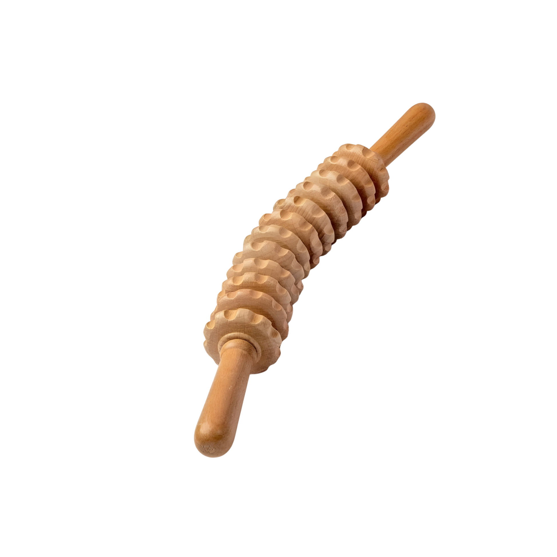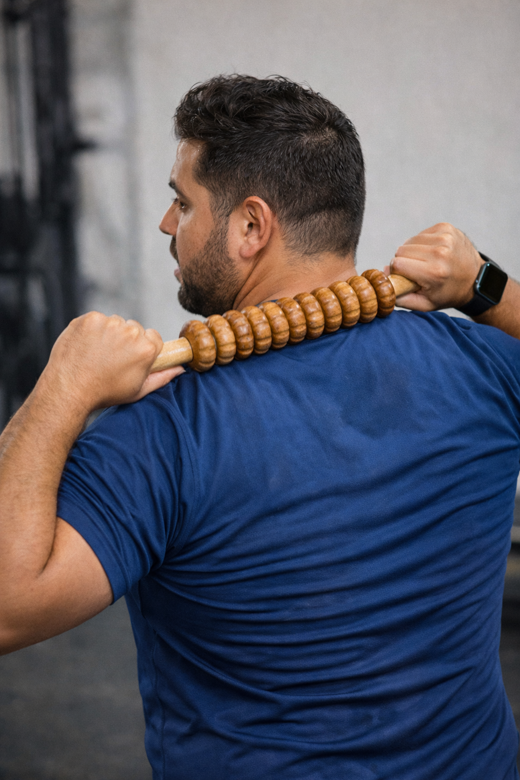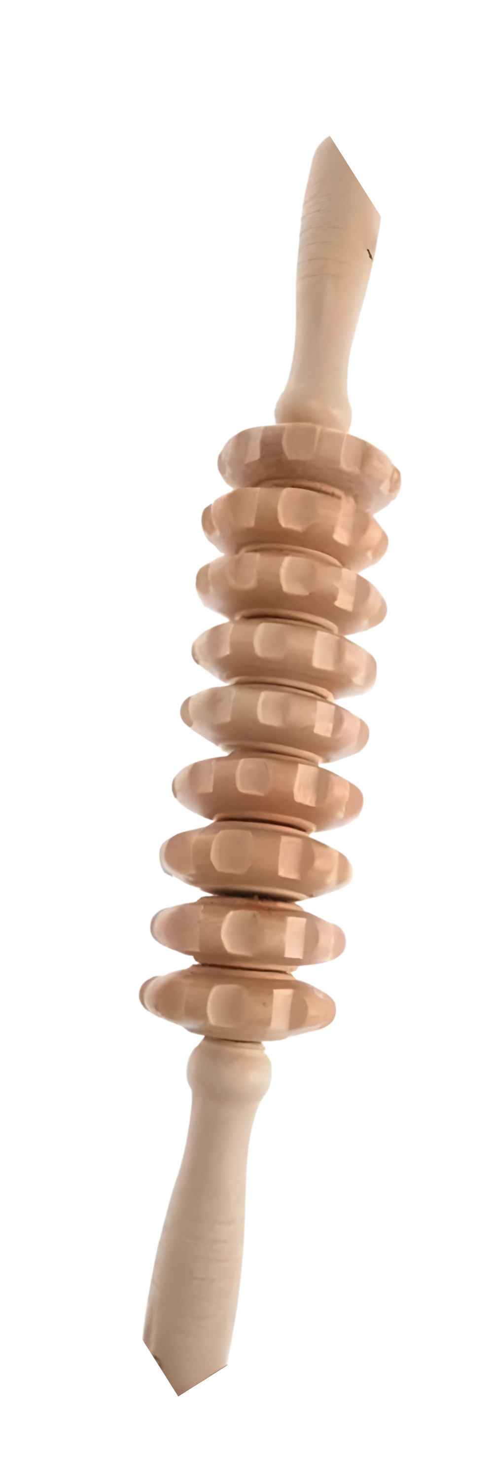 Masajeador de madera portátil diseñado para la relajación muscular y el bienestar corporal.